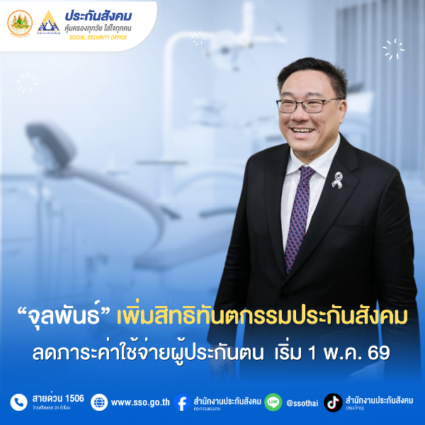 นายจุลพันธ์ อมรวิวัฒน์ รัฐมนตรีว่าการกระทรวงแรงงาน เปิดเผยว่ากระทรวงแรงงานได้มอบหมายให้สำนักงานประกันสังคมพัฒนาสิทธิประโยชน์ด้านทันตกรรมสำหรับผู้ประกันตนตามมาตรา 33 และมาตรา 39 เพื่อยกระดับคุณภาพชีวิต ลดภาระค่าใช้จ่ายด้านสุขภาพ และเพิ่มการเข้าถึงบริการทางการแพทย์อย่างทั่วถึงและมีประสิทธิภาพ ตั้งแต่วันที่ 1 พฤษภาคม 2569 ดังนี้