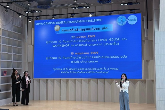 ทั้งนี้ โครงการ “MWA Campus Digital Campaign Challenge” Season 2 ต่อยอดจากความสำเร็จของโครงการ “MWA Campus Creator Challenge” ที่ได้รับการตอบรับอย่างดีในปีที่ผ่านมา โดยเน้นการพัฒนาทักษะการคิดเชิงกลยุทธ์และการประยุกต์ใช้ความรู้สู่การทำงานจริง ยกระดับศักยภาพคนรุ่นใหม่อย่างต่อเนื่อง เพื่อส่งเสริมเยาวชนไทยสู่การเป็นกำลังสำคัญของภาคธุรกิจและเศรษฐกิจในอนาคต