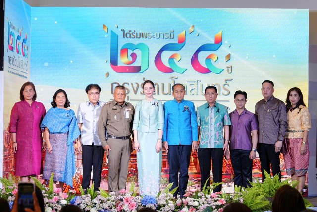 วันที่ 19 เมษายน 2569 เวลา 17.00 น. นางสาวซาบีดา ไทยเศรษฐ์ รัฐมนตรีว่าการกระทรวงวัฒนธรรม เป็นประธานงานเเถลงข่าวการจัดงาน “ใต้ร่มพระบารมี 244 ปี กรุงรัตนโกสินทร์“ โดยมี นายประสพ เรียงเงิน ปลัดกระทรวงวัฒนธรรม ผู้บริหารกระทรวงวัฒนธรรม ผู้บริหารบริษัทสยามพิวรรธน์ จำกัด ผู้เเทนหน่วยงาน ที่เกี่ยวข้อง ดารา อินฟลูเอนเซอร์ สื่อมวลชน เเละเเขกผู้มีเกียติ เข้าร่วม ณ Creative Space ชั้น 3 ศูนย์การค้าสยามดิสคัฟเวอร์รี่ กิจกรรมภายในงานเเถลงข่าวมีการเเสดงทางศิลปวัฒนธรรม การพูดคุยถึงกิจกรรมไฮไลท์ ของงานโดยผู้เเทนจาก 3 พื้นที่ บูธสาธิตอาหารไทย ขนมไทย เเละวัฒนธรรมไทย อาทิ การทำขนมครก อาหารชาววัง การทำบุหงารำไป การสานปลาตะเพียน เเละบูธถ่ายภาพ Generate AI
