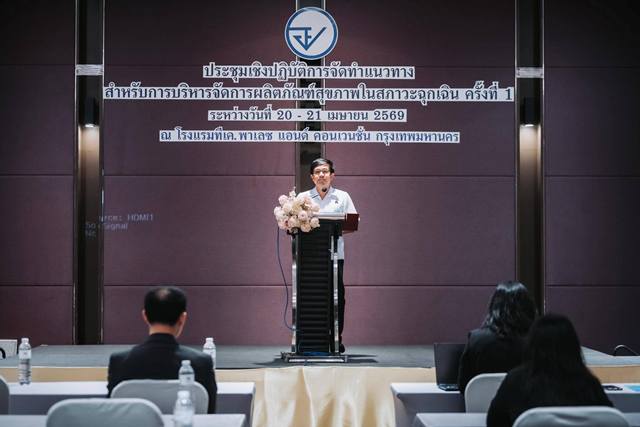 วันที่ 20 เมษายน 2569 ภญ.สุภัทรา บุญเสริม เลขาธิการคณะกรรมการอาหารและยา มอบหมาย นายแพทย์พิเชษฐ พืดขุนทด รองเลขาธิการคณะกรรมการอาหารและยา  เป็นประธานเปิดการประชุมเชิงปฏิบัติการจัดทำแนวทางสำหรับการบริหารจัดการผลิตภัณฑ์สุขภาพในสภาวะฉุกเฉิน ครั้งที่ 1 ซึ่งจัดขึ้นระหว่างวันที่ 20 – 21 เมษายน 2569 ณ โรงแรม ทีเค พาเลซ แอนด์ คอนเวนชั่น กรุงเทพฯ โดยได้รับความร่วมมือจากผู้เชี่ยวชาญหลากสาขา อาทิ ผู้แทนองค์การอนามัยโลก กรมควบคุมโรค และ สมาคมผู้ผลิตยา เข้าร่วมวางโครงสร้างด้านข้อมูลยุทธศาสตร์และการปฏิบัติการ