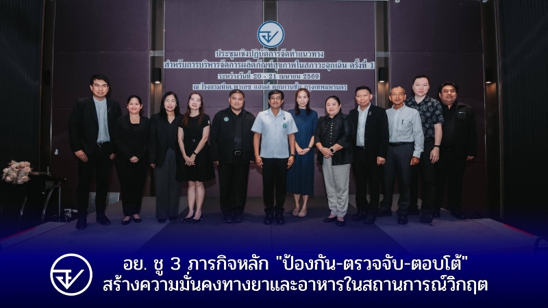 อย. ระดมผู้เชี่ยวชาญหลากสาขาวางแนวมาตรฐานการปฏิบัติงาน (SOP) ตามหลักสากลของ “ศูนย์ปฏิบัติการ EOC FDA” มุ่งเน้น 3 ภารกิจหลัก ป้องกัน ตรวจจับ ตอบโต้ เพื่อรักษาความต่อเนื่องของห่วงโซ่อุปทาน ช่วยให้ประเทศมีระบบสำรองเวชภัณฑ์ที่เข้มแข็ง และสร้างความมั่นใจว่าประชาชนจะเข้าถึงยาและอาหารที่ปลอดภัยได้อย่างทันท่วงทีในทุกสถานการณ์วิกฤต