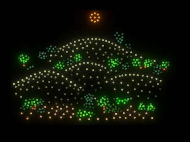 ถัดมาเป็นการแสดงโดรนแปรอักษร ถ่ายทอดสัญลักษณ์สำคัญของจังหวัดระนอง อาทิ ภาพตราพระนามาภิไธยย่อ ส.ก. ตราประจำพระองค์ สมเด็จพระนางเจ้าสิริกิติ์ พระบรมราชินีนาถ พระบรมราชชนนีพันปีหลวง ภาพสมเด็จพระนางเจ้าสิริกิติ์ พระบรมราชินีนาถ พระบรมราชชนนีพันปีหลวง ภาพคอซู้เจียง เจ้าเมืองระนอง ภาพบ่อน้ำพุร้อน ภาพภูเขาหญ้า ภาพหอนาฬิกา ภาพปูเจ้าฟ้า ภาพรถสองแถวไม้เอกลักษณ์ของท้องถิ่น และภาพโลโก้ อว.&วช. ที่ถูกออกแบบอย่างวิจิตรด้วยแสงสี สร้างความตื่นตาตื่นใจให้กับผู้เข้าชม พร้อมทั้งสื่อถึงอัตลักษณ์ วัฒนธรรม และศักยภาพด้านการท่องเที่ยวของจังหวัดระนองได้อย่างโดดเด่น