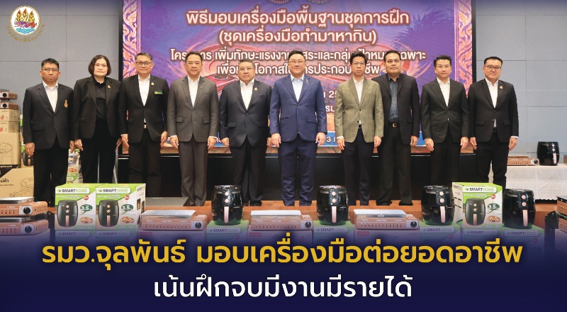 22 เม.ย. 2569 เวลา 10.00 น. นายจุลพันธ์ อมรวิวัฒน์ รัฐมนตรีว่าการกระทรวงแรงงาน เป็นประธานในพิธีมอบเครื่องมือพื้นฐานชุดการฝึก (ชุดเครื่องมือทำมาหากิน) ในโครงการเพิ่มทักษะแรงงานอิสระและกลุ่มเป้าหมายเฉพาะเพื่อเพิ่มโอกาสในการประกอบอาชีพ โดยมีนายสมาสภ์ ปัทมะสุคนธ์ อธิบดีกรมพัฒนาฝีมือแรงงาน กล่าวรายงานในพิธี ผู้บริหารกระทรวงแรงงานและกรมพัฒนาฝีมือแรงงาน ร่วมให้การต้อนรับในพิธีดังกล่าว ณ ห้องประชุม ชั้น 6 อาคาร DSD กรมพัฒนาฝีมือแรงงาน