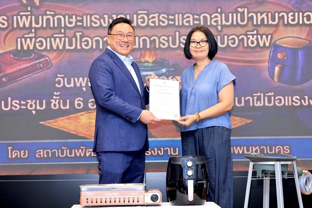 ด้านนายสมาสภ์ ปัทมะสุคนธ์ อธิบดีกรมพัฒนาฝีมือแรงงาน เปิดเผยว่า สำหรับโครงการนี้ ได้วางเป้าหมายฝึกอบรมทั่วประเทศจำนวน 35,000 คน ซึ่งได้ดำเนินการไปแล้วโดยสถาบันพัฒนาฝีมือแรงงานและสำนักงานพัฒนาฝีมือแรงงานจำนวน 22,866 คน ส่งผลมีผลิตภาพเพิ่มขึ้นร้อยละ 10.38 และมีรายได้เฉลี่ย 15,181 บาท ต่อคนต่อเดือน ก่อให้เกิดรายได้รวมของประเทศเพิ่มขึ้น 347,128,746 บาท ส่วนของวันนี้ดำเนินการโดยสถาบันพัฒนาฝีมือแรงงาน 13 กรุงเทพมหานคร ที่วางเป้าหมายไว้จำนวน 900 คน ในระหว่างช่วงเดือนตุลาคม 2568-เมษายน 2569 ดำเนินการไป 237 คน ซึ่งมีการมอบเครื่องมือทำมาหากิน จำนวน 5 รุ่น รวมทั้งสิ้น 70 คน ให้แก่การฝึกอบรมหลักสูตรการทำร้านอาหารเดลิเวอรี่ จำนวน 2 รุ่น และหลักสูตรการประกอบอาหารสตรีทฟู๊ด จำนวน 3 รุ่น โดยชุดเครื่องมือที่มอบให้ประกอบด้วย ชุดเตาแก๊สแรงดันสูงพร้อมอุปกรณ์ ชุดเตาปิ้งย่างแบบแก๊สพร้อมอุปกรณ์ และหม้อทอดไร้น้ำมันไฟฟ้า แต่ละชุดราคาจะไม่เกิน 4,000 บาท ผู้ผ่านการฝึกอบรมสามารถนำไปในการประกอบอาชีพได้