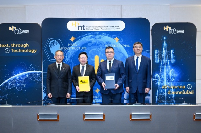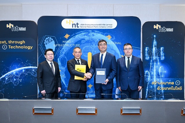 นายสรพงษ์ ศิริพันธุ์ รองกรรมการผู้จัดการใหญ่ สายงานโทรคมนาคมและดาวเทียม บมจ. โทรคมนาคมแห่งชาติ (NT) และ Mr. Zhang Yu, Head of International Business, China Satellite Communications Co., Ltd. (China Satcom) ร่วมลงนามความร่วมมือเป็นพันธมิตรด้านธุรกิจดาวเทียมระหว่าง NT และ China Satcom โดยมี พันเอก สรรพชัยย์ หุวะนันทน์ กรรมการผู้จัดการใหญ่ NT และ Mr. Sun Jing, Chairman of the Board China Satellite Communications Co., Ltd. ร่วมเป็นประธานในพิธี ณ อาคารสำนักงานใหญ่ NT ถนนแจ้งวัฒนะ กรุงเทพฯ เมื่อวันที่ 22 เมษายน 2569 ที่ผ่านมา