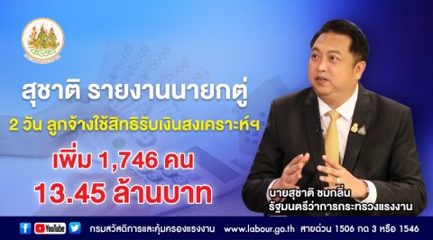สุชาติรายงานนายกตู่ 2 วัน ลูกจ้างยื่นใช้สิทธิรับเงินสงเคราะห์ฯ เพิ่ม 1,746 คน 13.45 ล้านบาท