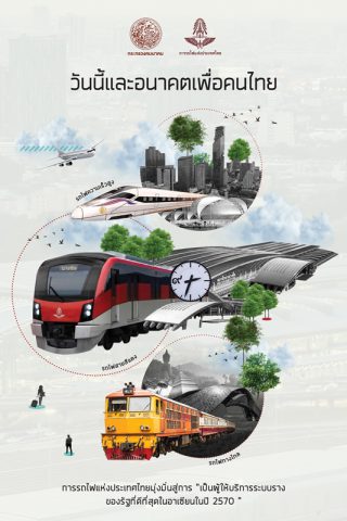 ภายใต้นโยบายการพัฒนาทางรางเพื่อสร้างคุณภาพชีวิตที่ดีให้กับคนไทยทั่วประเทศ รวมทั้งเพิ่มขีดความสามารถด้านโลจิสติกส์ให้กับเศรษฐกิจประเทศการรถไฟแห่งประเทศไทย ยังคงเดินหน้าพัฒนา “รถไฟ” ให้เป็นหนึ่งในโครงสร้างพื้นฐานด้านการเดินทางและการขนส่งที่เปี่ยมประสิทธิภาพ สามารถเชื่อมโยงทุกภูมิภาคและเติบโตเป็นศูนย์กลาง การคมนาคม “ระบบราง” ทั้งรถไฟฟ้ามหานคร รถไฟทางไกลรถไฟความเร็วสูง รถไฟเชื่อมท่าอากาศยาน รถไฟชานเมือง สายสีแดงที่เชื่อมโยง ครอบคลุม ทั้งการเดินทาง การขนส่ง และที่สําคัญให้กับประชาชนทุกภูมิภาค เพื่อให้ “รถไฟไทย” เป็นหนึ่งใน “โครงข่ายคมนาคม เพื่ออนาคตของประเทศ”