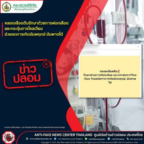 จากกรณีข้างต้น ทางสถาบันประสาทวิทยา กรมการแพทย์ กระทรวงสาธารณสุข ได้ตรวจสอบข้อมูลและชี้แจงว่าไม่เป็นความจริง เพราะไม่มีหลักฐานทางการแพทย์ที่บอกว่าการฟอกเลือด และการกระตุ้นการไหลเวียนจะลดการเกิดโรคได้ โดยโรคหลอดเลือดสมองตีบ หรือขาดเลือด จะมีอาการแขนขาอ่อนแรงครึ่งซีกข้างใดข้างหนึ่ง พูดไม่ชัด ปากเบี้ยว มองเห็นไม่ชัด โดยเป็นทันทีทันใด