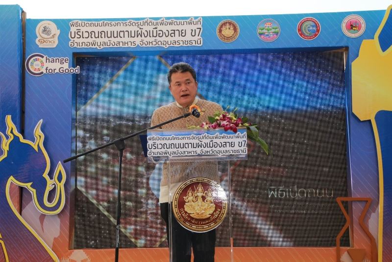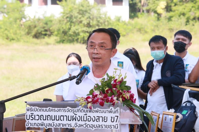 วันที่ 17 กุมภาพันธ์ 2566 เวลา 09.00 น. นายสุทธิพงษ์ จุลเจริญ ปลัดกระทรวงมหาดไทย เป็นประธาน ในพิธีเปิดถนนโครงการจัดรูปที่ดินเพื่อพัฒนาพื้นที่บริเวณถนนตามผังเมืองสาย ข7 อำเภอพิบูลมังสาหาร จังหวัดอุบลราชธานี โดยมีนายพงศ์รัตน์ ภิรมย์รัตน์ อธิบดีกรมโยธาธิการและผังเมือง กล่าวรายงาน และนายสมเพชร สร้อยสระคู รองผู้ว่าราชการจังหวัดอุบลราชธานี กล่าวต้อนรับ โครงการดังกล่าวถือเป็นก้าวแห่งความสำเร็จในการพัฒนาเมืองแบบราษฎร์-รัฐ ร่วมขับเคลื่อนการพัฒนาที่ดินให้เกิดการเปลี่ยนแปลงสู่สิ่งที่ดี Change for Good ในตำบลพิบูลและตำบลกุดชมภู โดยแก้ปัญหาที่ดินตาบอดให้สามารถเข้าถึงและใช้ประโยชน์ในพื้นที่ได้ ลดความเหลื่อมล้ำ เพิ่มมูลค่าที่ดิน กระตุ้นให้เศรษฐกิจเติบโต และสามารถพัฒนาเมืองได้อย่างมีประสิทธิภาพตามที่วางผังเมืองไว้อย่างเป็นระบบ โดยเจ้าของที่ดินยังมีกรรมสิทธิ์ในที่ดินของตนเอง นำมาซึ่งประโยชน์แก่เจ้าของที่ดินและชุมชนที่อยู่บริเวณโดยรอบ