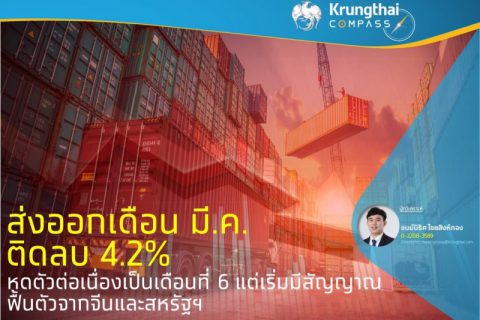 - ส่งออกเดือน มี.ค. ติดลบ 4.2%YoY หดตัวต่อเนื่องเป็นเดือนที่ 6 แต่ดีกว่าการคาดการณ์ของตลาดที่ -14% โดยการส่งออกสินค้าอุตสาหกรรมหดตัวต่อเนื่องจากอุปสงค์โลกที่ยังชะลอตัว ขณะที่การส่งออกสินค้าหมวดเกษตรและหมวดอุตสาหกรรมเกษตรขยายตัวเร่งขึ้น