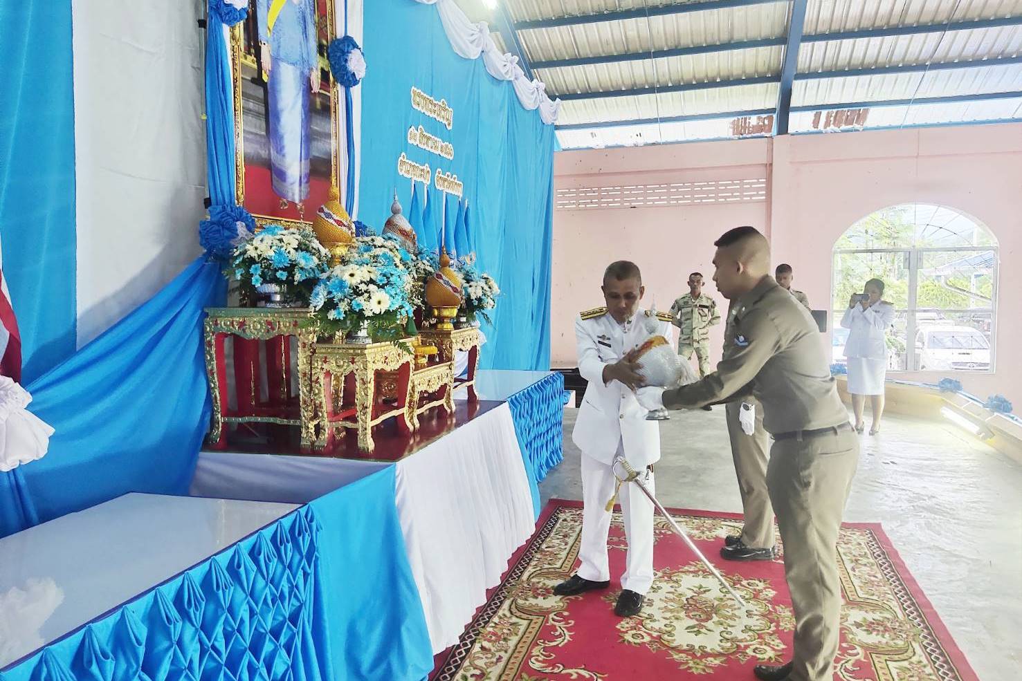 นายธรรมเนียม บำรุง นายอำเภอกะปง กล่าวว่า ข้าพระพุทธเจ้าทั้งหลายได้ประจักษ์แจ้งว่า ตลอดระยะเวลาอันยาวนานกว่า70ปี ใต้ฝ่าละอองธุลีพระบาท ทรงอุทิศทุ่มเทกำลังพระวรกาย กำลังพระราชหฤทัย และกำลังพระปัญญา ปฏิบัติบำเพ็ญพระราชกรณียกิจนัปการ โดยมิได้ทรงย่อท้อต่อความเหนื่อยยาก ทรงรักและเอื้ออาทรต่อราษฏรประดุมารดาที่รักและห่วงใยบุตร ทรงให้ความสำคัญกับการแก้ปัญหาพื้นฐานของประเทศ ที่เป็นเหตุของความทุกข์ยากของราษฏร และได้ทรงพระราชดำริโครงการต่างๆ หลากหลายสาขาครอบคุมทุกด้านทั้งยังส่งเสริมด้านการประกอบอาชีพ ควบคู่ไปกับการอนุรักษ์ธรรมชาติและสิ่งแวดล้อม ให้ดำรงอยู่เป็นเอกลักษณ์และเป็นมรดกล้ำค่าของชาติ โดยเฉพาะพสกนิกรผู้ยากไร้และประชาชนที่อยู่ในชนบทอันห่างไกลเท่านั้น แต่ยังส่งผลให้ประเทศชาติและสังคมไทยมีความเจริญมั่นคงก้าวหน้าตราบจนถึงปัจจุบัน เป็นพระมหากรุณาธิคุณล้นเกล้าล้นกระหม่อมอันหาที่สุดไม่ได้