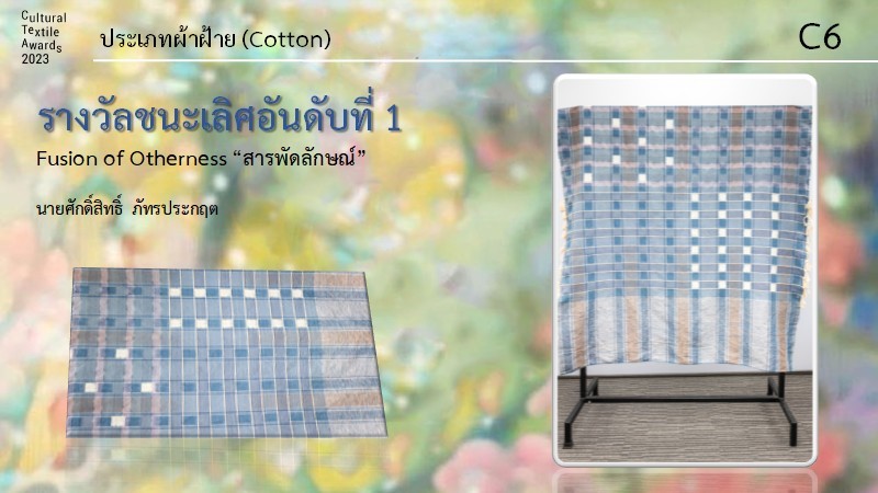 ประเภทผ้าฝ้าย รางวัลชนะเลิศ ได้แก่ ผลงาน Fusion of Otherness”สารพัดลักษณ์” โดย นายศักดิ์สิทธิ์ ภัทรประกฤต จ.นนทบุรี มีแรงบันดาลใจในการออกแบบ คือ การนำเอาความหลากหลายของความงามในการทอผ้า มาใช้ในการสร้างสรรค์เพื่อเป็นภาพสะท้อนของกระบวนการหลอมรวมทางวัฒนธรรม โดยอาศัยรูปแบบการหยิบยืมจากภูมิปัญญาที่หลากหลายมาสร้างให้เกิดรูปแบบของการรวมกันตามลักษณะ ผ้าขาวม้า ซึ่งถือเป็นสัญญะของวัฒนธรรมร่วมเป็นความหลากหลาย ซึ่งเกิดจากการนำเอาวัฒนธรรมนอกเข้ามาต่อยอด เพื่อให้เหมาะสมและเข้ากับวิถีชีวิตที่ต่างกัน ถือเป็นการยกระดับให้เห็นถึงศักยภาพความเป็นไปได้อื่นของผ้าขาวม้าไทยในมิติสากล ใช้เทคนิคกการทอด้วยโครงสร้างแบบ Twill ซึ่งทำให้ผ้ามีผิวสัมผัสที่แน่น แข็งแรง คงรูปได้ดี เหมาะสำหรับการใช้งานได้หลากหลาย ซ้อนด้วยมิติในผืนผ้าด้วยการมัดหมี่ทั้งเส้นพุ่งและเส้นยืน เป็นลายผ้าขาวม้า ซึ่งถือเป็นเทคนิคเฉพาะตัวของผู้ออกแบบ และการสลับกระสวยเพื่อให้เกิดรูปแบบผ้าขาวม้าร่วมสมัย วัสดุที่ใช้คราม ประดู่ ต้นตองโคบ เพกา ส่วนรองชนะเลิศอันดับ 1 ได้แก่ ผลงาน ”สุดสะแนนในแดนแอปพาเลเชีย” โดยนายวิฑูรย์ ไตรรัตน์วงศ์ จ.ขอนแก่น และรองชนะเลิศอันดับ 2 ผลงาน ”อีต่อง -ปิล็อก” โดยนางสาวปาณีกาญจน์ โหตระไวศยะ จ.ปทุมธานี