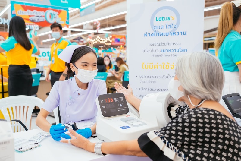 เนื่องในวันเบาหวานโลก 14 พฤศจิกายนของทุกปี โลตัส สนับสนุนการป้องกันโรคเบาหวาน จัดกิจกรรม “ดูแล ใส่ใจ ห่างไกลเบาหวาน” ตรวจคัดกรองเบาหวานเบื้องต้นโดยไม่มีค่าใช้จ่าย และให้ความรู้เรื่องการดูแลสุขภาพ ป้องกันโรคเบาหวานแก่ประชาชน โดยเป็นกิจกรรมที่จัดต่อเนื่องเป็นปีที่ 6 ซึ่งมีบริการตรวจวัดระดับน้ำตาลในเลือด บริการตรวจร่างกายเบื้องต้น อาทิ วัดความดัน หาค่าดัชนีมวลกาย (BMI) พร้อมให้ความรู้เรื่องโรคเบาหวานผ่านการร่วมกิจกรรมชิงรางวัล และแจกอะโวคาโดเพื่อสุขภาพ สอดคล้องกับนโยบายด้านความยั่งยืนของโลตัส ในประเด็นส่งเสริมการมีสุขภาพและสุขภาวะที่ดีของประชาชน (Health & Well-being) และสนับสนุนการเข้าถึงบริการสุขภาพขั้นพื้นฐาน ให้ความรู้เรื่องการป้องกันกลุ่มโรคไม่ติดต่อ (NCDs) จากการรับประทานอาหารที่ดี สนับสนุนการออกกำลังกาย และการตรวจสุขภาพอย่างสม่ำเสมอ