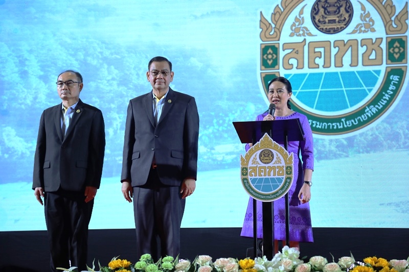 ด้าน ดร.วีรวรรณ ภูริเดช ผู้อำนวยการสำนักงานคณะกรรมการนโยบายที่ดินแห่งชาติ กล่าวว่า MOU ในวันนี้ เป็นการต่อยอดความร่วมมือระหว่างกัน หลังจากที่ปัจจุบัน สคทช. และ GISTDA อยู่ระหว่างการจัดทำข้อมูลเพื่อติดตามการใช้ประโยชน์ที่ดินในพื้นที่ คทช. นับเป็นจุดเริ่มต้นของความร่วมมือระหว่างสองหน่วยงานอย่างเป็นทางการ เพื่อยกระดับการกำหนดและขับเคลื่อนนโยบายและแผนการบริหารจัดการที่ดินและทรัพยากรดินของประเทศบนพื้นฐานของข้อมูลเชิงพื้นที่จากเทคโนโลยีอวกาศและภูมิสารสนเทศ โดยเฉพาะอย่างยิ่งการใช้ประโยชน์จากศักยภาพของ THEOS-2 ซึ่งเป็นดาวเทียมที่มีประสิทธิภาพสูงจากการลงทุนของประเทศไทย เนื่องจากการขับเคลื่อนภารกิจที่สำคัญของ สคทช. ทั้งการปรับปรุงแผนที่แนวเขตที่ดินของรัฐแบบบูรณาการ มาตราส่วน 1 : 4000 (One Map) การพิสูจน์สิทธิในเขตที่ดินของรัฐ การจัดที่ดินทำกินให้ชุมชน และการพัฒนาระบบฐานข้อมูลกลางด้านที่ดินและทรัพยากรดินของประเทศ ต้องอาศัยการมีข้อมูลเชิงพื้นที่ที่มีความถูกต้อง แม่นยำ และน่าเชื่อถือ ซึ่ง สคทช. เล็งเห็นถึงความสำคัญของการนำข้อมูล เทคโนโลยี และนวัตกรรมของ GISTDA มาใช้ในการบริหารจัดการที่ดินของประเทศให้เกิดประสิทธิภาพสำหรับเป็นฐานของการพัฒนาประเทศอย่างยั่งยืน โดยเฉพาะอย่างยิ่งแอปพลิเคชัน Dragonfly ซึ่งจะเป็นประโยชน์ต่อการตัดสินใจวางแผนและบริหารจัดการแปลงเพาะปลูกของเกษตรกรในพื้นที่ คทช. ตั้งแต่เริ่มเพาะปลูกจนถึงจำหน่ายผลผลิตอย่างครบวงจร