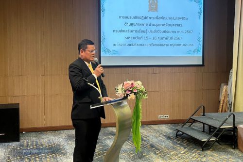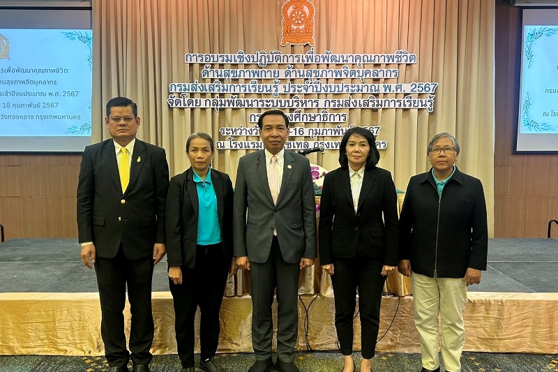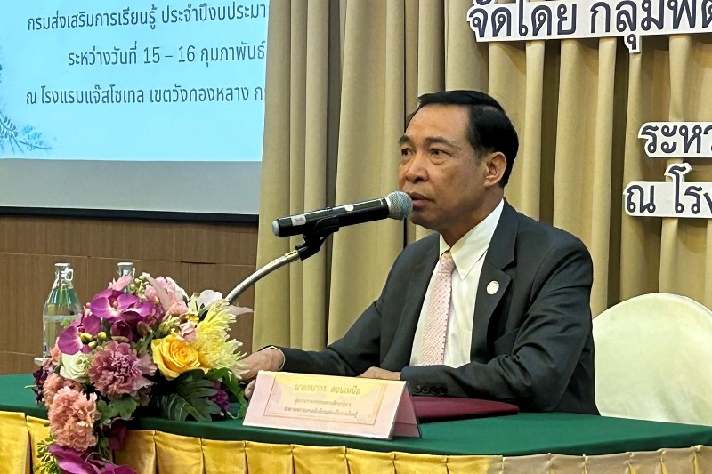 นายธนากร ดอนเหนือ ผู้ตรวจราชการกระทรวงศึกษาธิการ รักษาราชการแทน อธิบดีกรมส่งเสริมการเรียนรู้ เป็นประธานเปิดการอบรมเชิงปฏิบัติการเพื่อพัฒนาคุณภาพชีวิตด้านสุขภาพกาย สุขภาพจิตบุคลากร กรมส่งเสริมการเรียนรู้ โดย นายนภมณฑล สิบหมื่นเปี่ยม ผู้อำนวยการกลุ่มพัฒนาระบบบริหาร เป็นผู้กล่าวรายงานวัตถุประสงค์ของการอบรมเชิงปฏิบัติการในครั้งนี้