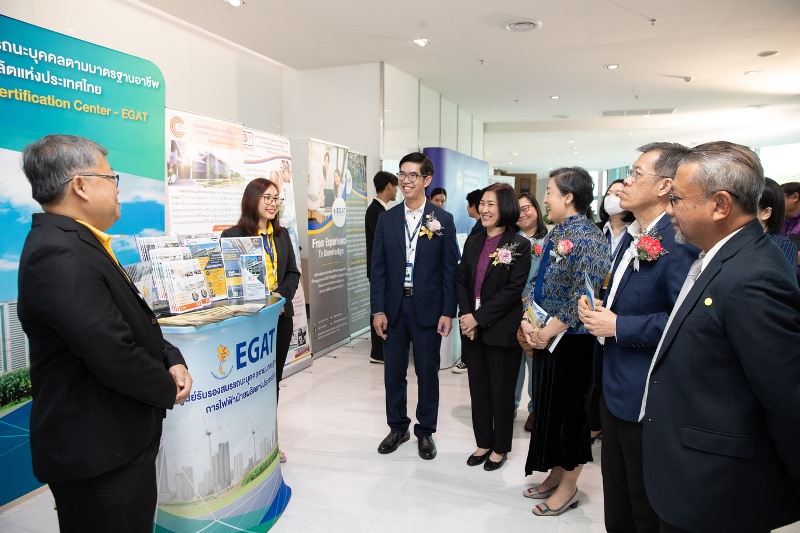 นางสาวพนา สุภาวกุล ผู้ช่วยผู้ว่าการพัฒนาองค์การ เปิดเผยว่า กฟผ. มีแนวทางในการพัฒนาบุคลากรและให้การประเมินรับรองสมรรถนะของบุคคลตามมาตรฐานอาชีพในสาขางานที่เกี่ยวข้องกับภารกิจหลักของ กฟผ. โดยได้รับอนุมัติจาก สคช. เปิดศูนย์รับรองสมรรถนะบุคคลตามมาตรฐานอาชีพ กฟผ. ในปี 2564 โดยมีวัตถุประสงค์เพื่อให้บริการประเมินและรับรองสมรรถนะบุคคลฯ สาขาวิชาชีพพลังงานและพลังงานทดแทน โดยระยะเริ่มแรกมีสาขางานที่สามารถให้การรับรองได้ จำนวน 3 สาขางาน 33 อาชีพ 59 ระดับคุณวุฒิ ให้แก่ผู้ปฏิบัติงาน กฟผ. และบุคคลทั่วไป ได้แก่ ระบบผลิตไฟฟ้า ผลิตไฟฟ้าจากพลังงานน้ำ และระบบส่งพลังงานไฟฟ้า มีผู้เข้ารับการรับรองไปแล้วมากกว่า 1,000 คน ซึ่งในปี 2567 นี้ กฟผ. ได้ยื่นขยายและเตรียมเปิดรับรองสาขาวิชาชีพพลังงานและพลังงานทดแทนเพิ่มอีก 2 สาขางาน ได้แก่ สาขาพลังงานไฟฟ้าจากเซลล์แสงอาทิตย์ (จำนวน 3 อาชีพ 4 ระดับคุณวุฒิ) และสาขาระบบผลิตไฟฟ้าจากพลังงานลม (จำนวน 2 อาชีพ 2 ระดับคุณวุฒิ) รวมการให้บริการรับรองสาขาวิชาชีพพลังงานและพลังงานทดแทนทั้งสิ้น 5 สาขางาน 38 อาชีพ 65 ระดับคุณวุฒิ