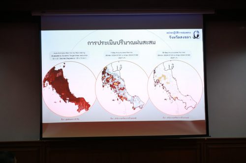 นอกจากนี้ อธิบดีกรมฝนหลวงฯ และนักวิชาการ ได้ลงพื้นที่การเกษตรใน จ.สงขลา โดยได้มีการติดตามผลปฏิบัติการฝนหลวงและความต้องการน้ำ ซึ่งพี่น้องเกษตรกรยังขอรับบริการฝนหลวงอย่างต่อเนื่อง จึงได้กำชับให้หน่วยปฏิบัติการฝนหลวง จ.สงขลา ติดตามสภาพอากาศและวางแผนปฏิบัติการฝนหลวงทุกวันเพื่อให้มีปริมาณน้ำเพียงพอสำหรับทำการเกษตรในพื้นที่ภาคใต้ตอนล่าง ทั้งนี้ พี่น้องเกษตรกรและพี่น้องประชาชนสามารถขอรับบริการฝนหลวงได้ทุกวัน ไม่มีค่าใช้จ่าย โดยติดต่อไปที่เบอร์โทรศัพท์ 02-109-5100 ต่อ 410, ศูนย์ปฏิบัติการฝนหลวง 7 ภูมิภาค, อาสาสมัครฝนหลวงในพื้นที่, เว็บไซต์ขอรับบริการฝนหลวง https://it.royalrain.go.th/rainmaking/ หรือช่องทางโซเชียลมีเดียต่าง ๆ : @drraa_pr