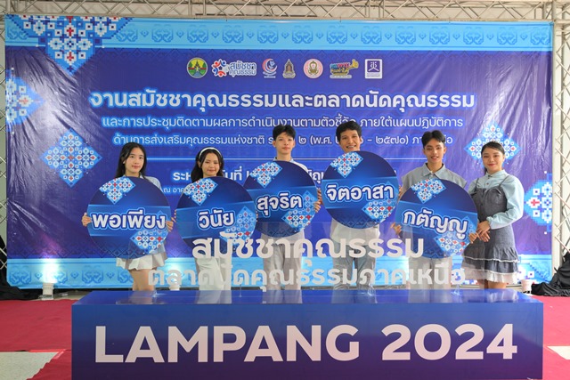 วันที่ 24 มิถุนายน 2567 นางสาวสุดาวรรณ หวังศุภกิจโกศล รัฐมนตรีว่าการกระทรวงวัฒนธรรม มอบหมายให้ นางสาวพลอย ธนิกุล ผู้ช่วยรัฐมนตรีประจำกระทรวงวัฒนธรรม เป็นประธานพิธีเปิด งานสมัชชาคุณธรรมและตลาดคุณธรรมและการประชุมติดตามผลการดำเนินงานตามตัวชี้วัดภายใต้แผนปฏิบัติการด้านการส่งเสริมคุณธรรมแห่งชาติ ระยะที่ 2 (พ.ศ.2566 – 2570) ภาคเหนือ ณ โรงเรียนอัสสัมชัญ อำเภอเมือง จังหวัดลำปาง พร้อมด้วย นายชัยพล สุขเอี่ยม อธิบดีกรมการศาสนา รองศาสตราจารย์นายแพทย์สุริยเดว ทรีปาตี ผู้อำนวยการศูนย์คุณธรรม (องค์การมหาชน) ผู้บริหารกระทรวงวัฒนธรรม นางสาวนิติยา พงษ์พานิช รองผู้ว่าราชการจังหวัดลำปาง พร้อมด้วย ผู้บริหารหน่วยงาน ผู้แทนภาคีเครือข่ายวัฒนธรรมในพื้นที่จังหวัดภาคเหนือ เข้าร่วม
