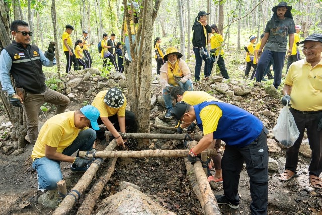 ธนาคารกรุงไทย นำพนักงานกรุงไทยจิตอาสา (VVE Vayu Volunteer) ร่วมกับเจ้าหน้าที่ส่วนจัดการป่าชุมชนบ้านพุตูม พร้อมด้วยบุคลากรจากโรงเรียนบ้านพุตูม โรงเรียนสุวรรณรังสฤษฎ์วิทยาลัย เครือข่ายอนุรักษ์แม่น้ำเพชรบุรี และประชาชนในพื้นที่กว่า 170 คน ร่วมสร้างฝายชะลอน้ำ ณ ป่าชุมชนบ้านพุตูม อ.บ้านลาด จ.เพชรบุรี จำนวน 10 ฝาย เพื่อน้อมรำลึกในพระมหากรุณาธิคุณ และเฉลิมพระเกียรติพระบาทสมเด็จพระเจ้าอยู่หัว เนื่องในโอกาสมหามงคลเฉลิมพระชนมพรรษา 6 รอบ 28 กรกฎาคม 2567 ตลอดจนเป็นการสืบสานและต่อยอดพระราชปณิธานพระบาทสมเด็จพระบรมชนกาธิเบศร มหาภูมิพลอดุลยเดชมหาราช บรมนาถบพิตร โดยความร่วมมือในการสร้างฝายชะลอน้ำครั้งนี้ เพื่อช่วยเก็บกักน้ำ สำหรับใช้อุปโภคบริโภค แก้ปัญหาภัยธรรมชาติ อาทิ ภัยแล้ง อุทกภัย ไฟป่า และดินโคลนถล่ม อีกทั้ง ยังช่วยอนุรักษ์ฟื้นฟูป่าต้นน้ำและระบบนิเวศให้กลับมามีความอุดมสมบูรณ์อย่างยั่งยืน พลิกฟื้นชีวิตให้แก่ชาวบ้าน ก่อให้เกิดความรัก ความสามัคคีกลับคืนสู่คนในพื้นที่ อันเป็นการสืบสานศาสตร์พระราชาที่ว่า “การสร้างฝายได้มากกว่าน้ำ”