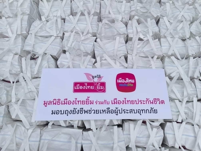 เมืองไทยประกันชีวิต และมูลนิธิเมืองไทยยิ้ม ร่วมช่วยเหลือผู้ประสบอุทกภัย จัดทำถุงยังชีพเพื่อช่วยเหลือประชาชนที่ได้รับความเดือดร้อน 2,000 ชุด บรรเทาความเดือดร้อนของประชาชนที่ได้รับผลกระทบจากน้ำท่วม การดำเนินการครั้งนี้เป็นส่วนหนึ่งของความตั้งใจในการสนับสนุนและช่วยเหลือชุมชนในช่วงเวลาที่ต้องการความช่วยเหลืออย่างเร่งด่วน