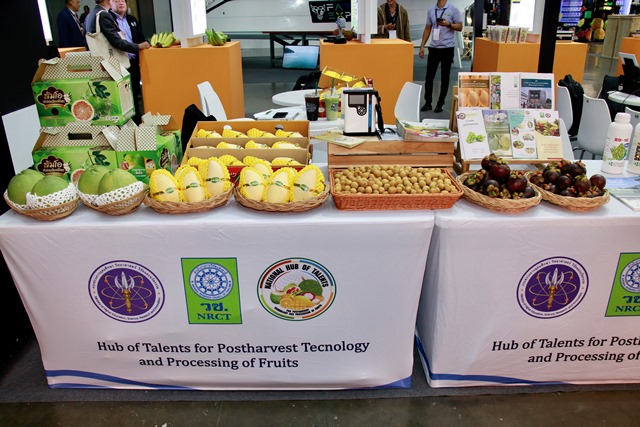 ด้าน รศ.ดร. พีระศักดิ์ ฉายประสาท ผู้อำนวยการศูนย์รวมผู้เชี่ยวชาญเทคโนโลยีหลังการเก็บเกี่ยวและแปรรูปผลไม้ วช. กล่าวว่าศูนย์รวมผู้เชี่ยวชาญฯ ได้รับการสนับสนุนงบประมาณจาก วช. ปี2566-2570 และได้รับความร่วมมือจากสถาบันและศูนย์วิจัยในสถาบันอุดมศึกษาหน่วยงานภาครัฐและเอกชนเพื่อพัฒนากำลังคนทั้งภาคการศึกษาและภาคอุตสาหกรรมให้เป็นฐานการขับเคลื่อนการพัฒนาเศรษฐกิจและสังคมของประเทศโดยใช้การวิจัยวิทยาศาสตร์และเชื่อมโยงกับเครือข่ายนักวิจัยที่มีความเชี่ยวชาญด้านการจัดการหลังการเก็บเกี่ยวและการแปรรูปผลไม้ในหน่วยงานต่างๆทั้งในและต่างประเทศก่อให้เกิดผลผลิตจากงานวิจัยที่มากขึ้นและผลงานวิจัยที่ถูกต่อยอดขยายผลได้ ศูนย์รวมผู้เชี่ยวชาญฯ มีสมาชิก 39 คน จาก 18 สถาบันการศึกษาและหน่วยงานที่เกี่ยวข้อง วัตถุประสงค์ของการจัดนิทรรศการครั้งนี้เพื่อนำผลงานวิจัยมาขับเคลื่อนและผลักดันผลไม้ไทยให้สามารถส่งออกได้เพิ่มขึ้น และขยายผลถ่ายทอดต้นแบบงานวิจัยสู่การใช้ประโยชน์ในอุตสาหกรรมการเกษตรอย่างเป็นรูปธรรมและยั่งยืน