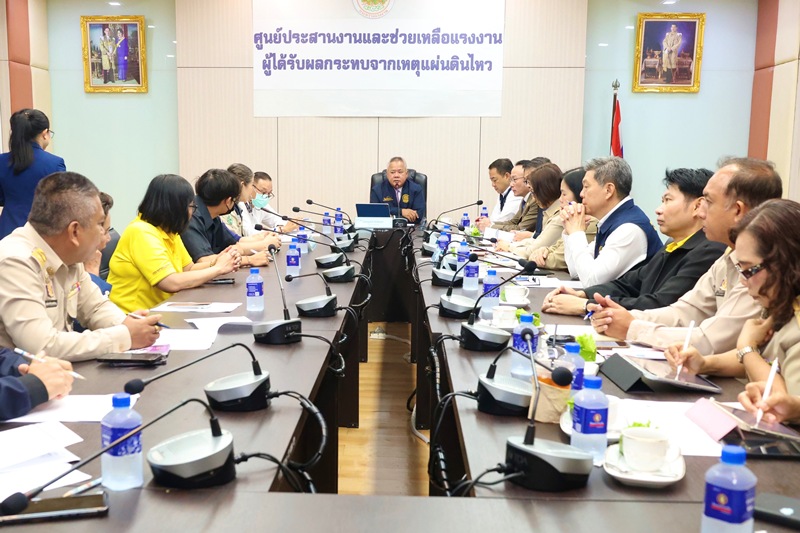 เมื่อวันจันทร์ที่ 31 มีนาคม 2568 นายบุญสงค์ ทัพชัยยุทธ์ ปลัดกระทรวงแรงงาน เป็นประธานการประชุมวอร์รูม (War Room) คณะทำงานศูนย์ประสานงานและช่วยเหลือแรงงานผู้ได้รับผลกระทบจากเหตุแผ่นดินไหว หารือกับผู้แทนบริษัท อิตาเลียนไทย ดีเวล๊อปเมนต์ จำกัด (มหาชน) และ บริษัท ไชน่า เรลเวย์ นัมเบอร์ 10 (ประเทศไทย) จำกัด ซึ่งเป็นกิจการร่วมค้าดำเนินการก่อสร้างอาคารสำนักงานตรวจเงินแผ่นดิน (แห่งใหม่) เพื่อดำเนินการช่วยเหลือเยียวยาลูกจ้างที่ได้รับผลกระทบจากเหตุแผ่นดินไหว โดยมี นางมารศรี ใจรังษี เลขาธิการสำนักงานประกันสังคม นางนงค์ลักษณ์ กอวรกุล รองเลขาธิการสำนักงานประกันสังคม ผู้บริหารกระทรวงแรงงาน ผู้บริหารสำนักงานประกันสังคม และเจ้าหน้าที่หน่วยงานสังกัดกระทรวงแรงงาน เข้าร่วมประชุม ณ ศูนย์ประสานงานและช่วยเหลือแรงงานผู้ได้รับผลกระทบจากเหตุแผ่นดินไหว ชั้น 1 อาคารกระทรวงแรงงาน เขตดินแดง กรุงเทพมหานคร