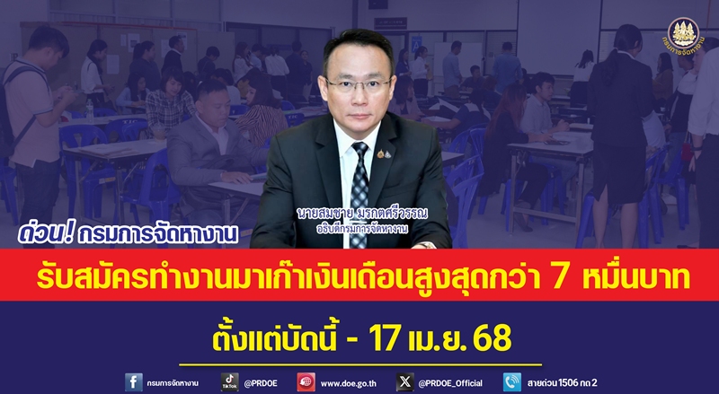 นายสมชาย มรกตศรีวรรณ อธิบดีกรมการจัดหางาน เปิดเผยว่า กรมการจัดหางานเปิดรับสมัครคนหางานเพื่อไปทำงานในเขตบริหารพิเศษมาเก๊ากับนายจ้างบริษัท Galaxy Entertainment Group ซึ่งประกอบกิจการโรงแรม คาสิโน และร้านอาหาร 3 ตำแหน่ง รวม 9 อัตรา ได้แก่ หัวหน้า พนักงานต้อนรับลูกค้าวีไอพี กัปตัน เงินเดือนระหว่าง 63,144 – 75,773 บาท (อัตราแลกเปลี่ยน ณ วันที่ 19 มีนาคม 2568 : 1 เหรียญมาเก๊า เท่ากับ 4.21 บาท) นายจ้างจะจ่ายค่าโดยสารเครื่องบินไป – กลับ เมื่อทำงานสิ้นสุดสัญญาจ้าง ช่วยจ่ายค่าที่พักเดือนละ 500 เหรียญมาเก๊า หรือประมาณ 2,105 บาท จัดอาหารให้ในช่วงเวลาทำงาน มีประกันสุขภาพและสวัสดิการตามกฎหมายแรงงานมาเก๊า ผู้สนใจสามารถยื่นใบสมัครได้ที่เว็บไซต์ toea.doe.go.th โดยลงทะเบียนผ่านระบบอิเล็กทรอนิกส์การบริหารแรงงานไทยไปต่างประเทศ กรอกข้อมูลเพื่อลงทะเบียนคนหางาน และดำเนินการสมัครไปทำงาน เลือกหัวข้อ “สมัครไปทำงานโดยรัฐจัดส่ง” และเลือกรายการ “รับสมัครคนหางานเพื่อไปทำงานในเขตบริหารพิเศษมาเก๊ากับนายจ้างบริษัท Galaxy Entertainment Group (ครั้งที่ 1/2568)” สมัครได้ตั้งแต่วันที่ 8 – 17 เมษายน 2568 ตลอด 24 ชั่วโมง โดยไม่เว้นวันหยุดราชการ