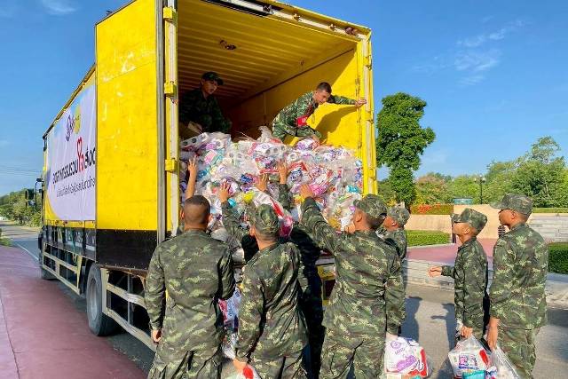 “วันนี้กระทรวงอุตสาหกรรมมาทำหน้าที่ส่วนเล็ก ๆ ในการเปิดศูนย์รวบรวมความช่วยเหลือจากอุตสาหกรรมทั่วประเทศที่รวมใจกัน เพื่อส่งมอบข้าวของเครื่องใช้ที่จำเป็นให้ศูนย์พักพิงและพี่น้องทหารไทย และขอย้ำว่า