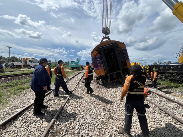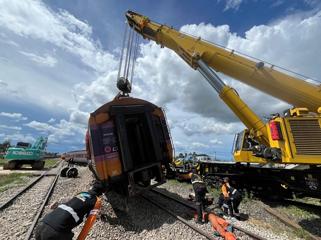 การรถไฟฯ ส่งขบวนรถพิเศษช่วยอันตราย กู้ขบวนรถตกรางที่กุยบุรี คาดเสร็จสิ้นภายในคืนนี้ ส่วนผู้ได้รับบาดเจ็บ 10 ราย ปลอดภัยและออกจากโรงพยาบาลเรียบร้อยแล้ว