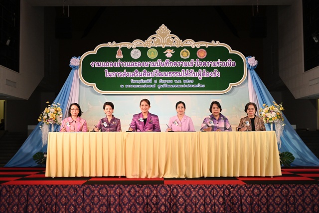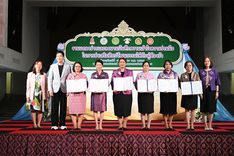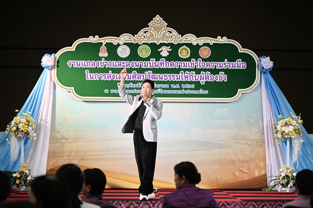 กระทรวงวัฒนธรรม โดยสำนักงานปลัดกระทรวงวัฒนธรรม กรมศิลปากร กรมส่งเสริมวัฒนธรรม สำนักงานศิลปวัฒนธรรมร่วมสมัย และสถาบันบัณฑิตพัฒนศิลป์ ร่วมกับกรมราชทัณฑ์ กระทรวงยุติธรรม จัด “งานแถลงข่าวและลงนามบันทึกความเข้าใจความร่วมมือในการส่งเสริมศิลปวัฒนธรรมให้กับผู้ต้องขัง”