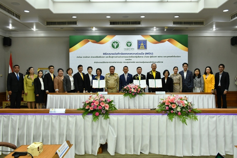 วันที่ 8 กันยายน 2568 ที่ สำนักงานปลัดกระทรวงสาธารณสุข จังหวัดนนทบุรี นายสมศักดิ์ เทพสุทิน รัฐมนตรีว่าการกระทรวงสาธารณสุข พร้อมด้วย พันตำรวจเอกทวี สอดส่อง รัฐมนตรีว่าการกระทรวงยุติธรรม เป็นประธานและสักขีพยานในการลงนามบันทึกข้อตกลงความร่วมมือ ว่าด้วยการรักษา ช่วยเหลือเยียวยา และฟื้นฟูทางด้านร่างกายและจิตใจแก่ผู้เสียหาย จำเลย ผู้ต้องหา พยาน และบุคคลที่เกี่ยวข้อง โดยมี นายแพทย์มณเฑียร คณาสวัสดิ์ รองปลัดกระทรวงสาธารณสุข นายแพทย์กิตติศักดิ์ อักษรวงศ์ อธิบดีกรมสุขภาพจิต และ นางสาวเอมอร เสียงใหญ่ อธิบดีกรมคุ้มครองสิทธิและเสรีภาพ เป็นผู้ลงนาม