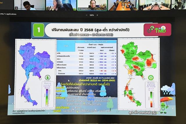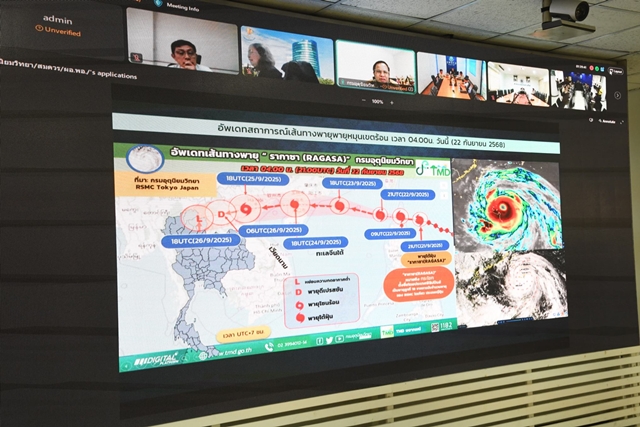 วันที่ 22 กันยายน 2568 นายไพฑูรย์ เก่งการช่าง รองเลขาธิการสำนักงานทรัพยากรน้ำแห่งชาติ (สทนช.) เปิดเผยว่า ในวันนี้ สทนช. ได้มีการประชุมติดตามสถานการณ์น้ำร่วมกับหน่วยงานที่เกี่ยวข้อง ได้แก่ กรมอุตุนิยมวิทยา สถาบันสารสนเทศทรัพยากรน้ำ (องค์การมหาชน) (สสน.) กรมชลประทาน (ชป.) การไฟฟ้าฝ่ายผลิตแห่งประเทศไทย (กฟผ.) กรมป้องกันและบรรเทาสาธารณภัย (ปภ.) และผู้ทรงคุณวุฒิ จากการประชุม กรมอุตุนิยมวิทยาได้ร่วมกับ สสน. ประเมินสถานการณ์ฝนพบว่า พายุไต้ฝุ่น “รากาซา (RAGASA)” มีแนวโน้มจะเคลื่อนลงสู่ทะเลจีนใต้ในวันนี้ จากนั้นจะเคลื่อนตัวตามแนวชายฝั่งทางตอนใต้ของประเทศจีน ลงสู่อ่าวตังเกี๋ย และจะอ่อนกำลังลงเป็นพายุโซนร้อนก่อนที่ขึ้นฝั่งบริเวณประเทศเวียดนามตอนบน ในช่วงวันที่ 25 – 26 กันยายน 2568 หลังจากนั้นจะอ่อนกำลังลงตามลำดับ อิทธิพลของพายุนี้จะทำให้ร่องมรสุมและมรสุมที่พัดปกคลุมทะเลอันดามัน ประเทศไทยและอ่าวไทย มีกำลังแรงขึ้น ส่งผลให้ช่วงวันที่ 22 กันยายน -1 ตุลาคม 2568 เกิดร่องมรสุมพาดผ่านบริเวณภาคเหนือตอนล่าง ภาคอีสานตอนบน ประกอบกับมรสุมมีกำลังปานกลาง อาจทำให้ประเทศไทยตอนบนมีฝนตกหนักเพิ่มขึ้น จึงต้องเฝ้าระวังฝนตกหนักบริเวณพื้นที่ จังหวัดแม่ฮ่องสอน จังหวัดตาก จังหวัดบึงกาฬ จังหวัดอำนาจเจริญ และจังหวัดอุบลราชธานี