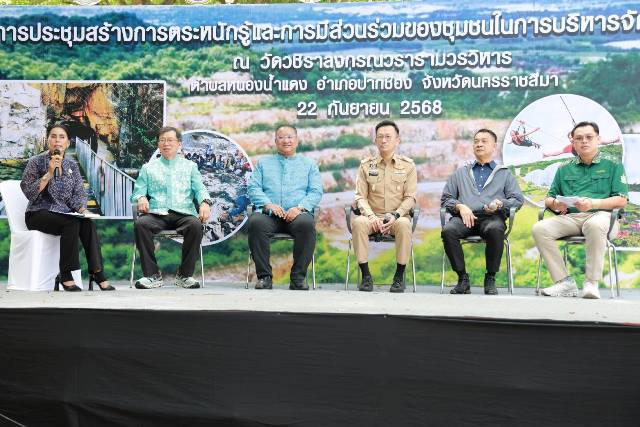 วันที่ 22 กันยายน 2568 กรมทรัพยากรธรณี จัดประชุม “สร้างการตระหนักรู้และการมีส่วนร่วมของชุมชนในการบริหารจัดการแหล่งแร่” ณ วัดวชิราลงกรณวรารามวรวิหาร จังหวัดนครราชสีมา โดยมีนายพิชิต สมบัติมาก อธิบดีกรมทรัพยากรธรณี เป็นประธาน พร้อมด้วยผู้แทนจากภาครัฐ เอกชน ภาคีเครือข่าย และชุมชนในพื้นที่เข้าร่วมการประชุมดังกล่าวเป็นส่วนหนึ่งของ “โครงการเพิ่มประสิทธิภาพการพัฒนาแหล่งแร่ในพื้นที่จังหวัดนครราชสีมาและสระบุรี” ที่จัดขึ้นเพื่อมุ่งอนุรักษ์ ฟื้นฟู และพัฒนาแหล่งแร่ให้เกิดประโยชน์ต่อเศรษฐกิจ สังคม และสิ่งแวดล้อม พร้อมขับเคลื่อนการพัฒนาแหล่งแร่เพื่อเป็นแหล่งเรียนรู้และแหล่งท่องเที่ยวของชุมชน