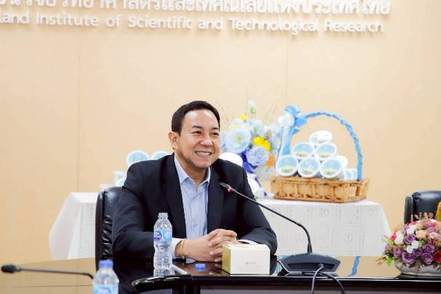 ดร.พงศธร ประภักรางกูล รองผู้ว่าการวิจัยและพัฒนาด้านอุตสาหกรรมชีวภาพ สถาบันวิจัยวิทยาศาสตร์และเทคโนโลยีแห่งประเทศไทย (วว.) กระทรวงการอุดมศึกษาวิทยาศาสตร์ วิจัยและนวัตกรรม (อว.) พร้อมด้วย ดร.โสภณ สิริศรัทธา ผอ.ศูนย์ความหลากหลายทางชีวภาพ (ศคช.) ดร.ราเชนทร์ วิสุทธิแพทย์ นักวิจัยอาวุโส ศคช และดร.ธัญชนก เมืองมั่น นักวิจัยอาวุโส ศูนย์เชี่ยวชาญนสัตกรรมผลิตภัณฑ์จากสมุนไพร (ศนส.) เป็นผู้แทน วว. ร่วมมอบ “ผลิตภัณฑ์ข้าวเม่าคลุกกึ่งสำเร็จรูปพร้อมบริโภค” ให้แก่ แพทย์หญิงเพชรดาว โต๊ะมีนา ว่าที่ผู้สมัครจังหวัดปัตตานี เขตเลือกตั้งที่ 1 พรรคภูมิใจไทย และอดีตที่ปรึกษารัฐมนตรีว่าการกระทรวง อว. และคณะ จำนวน 2,000 กล่อง เพื่อนำไปมอบให้ทหารชายแดนใต้ต่อไป ในวันที่ 23 กันยายน 2568 ณ วว. เทคโนธานี คลองห้า จ.ปทุมธานี