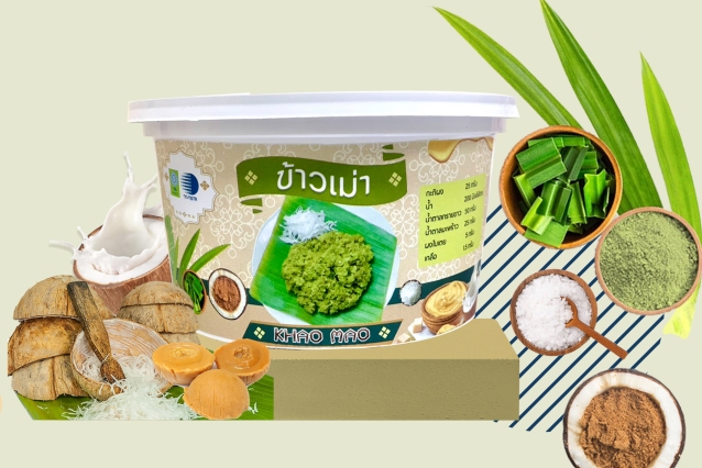 ผลิตภัณฑ์ข้าวเม่าคลุกกึ่งสำเร็จรูปพร้อมบริโภค ภายใน 1 กล่อง ประกอบด้วย 1.ซองฟอยล์ผงปรุงรส ขนาดเล็ก 1 ซอง 2. ซองฟอยล์ข้าวเม่า ขนาดใหญ่ 1 ซอง และ 3. ซองพลาสติกใสบรรจุพร้าวอบแห้ง 1 ซอง