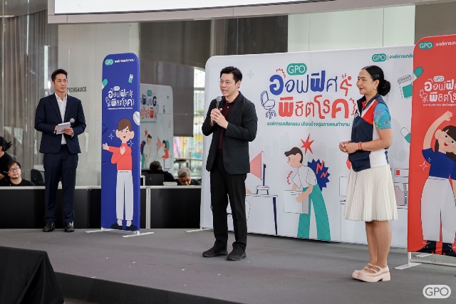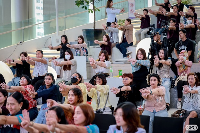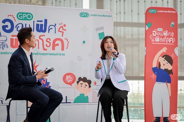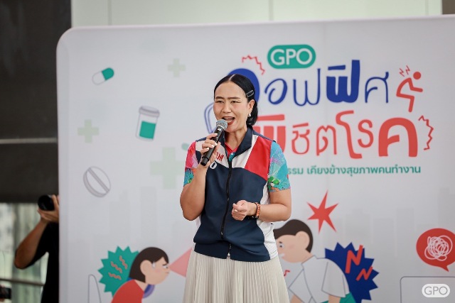 “สลายความปวด เพิ่มความปัง” ให้กับชีวิตการทำงานกับกิจกรรม GPO ออฟฟิศพิชิตโรค : องค์การเภสัชกรรมเคียงข้างสุขภาพคนทำงาน เกิดขึ้นจากความห่วงใยขององค์การเภสัชกรรม ที่มุ่งหวังให้คนวัยทำงานมีความรู้ในการดูแลสุขภาพ การบริหารร่างกาย และการใช้ยาอย่างปลอดภัย และเป็นการจุดประกายที่ทำให้ทุกคนตระหนักและหันมาใส่ใจสุขภาพตัวเองและคนรอบข้างมากขึ้น โดยให้ความสำคัญกับการออกกำลังกาย สร้างสมดุลการทำงาน หยุดพัก ขยับตัว รวมถึงการรับประทานอาหารที่มีประโยชน์ และการพักผ่อนอย่างเพียงพอ” ผู้อำนวยการฝ่ายการตลาด กล่าว
