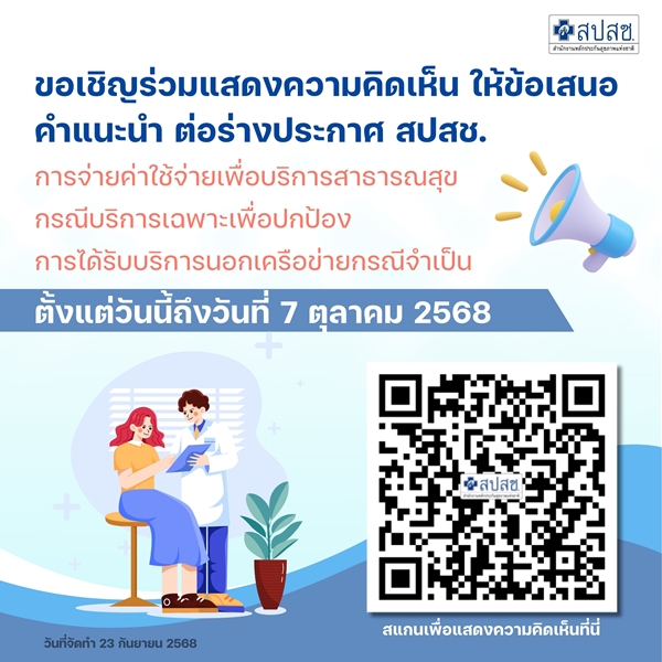 ขอเชิญร่วมแสดงความคิดเห็น ต่อร่างประกาศ สปสช. กรณีบริการเฉพาะเพื่อปกป้องการได้รับบริการนอกเครือข่ายกรณีจำเป็น ตั้งแต่วันนี้- 7 ต.ค.68