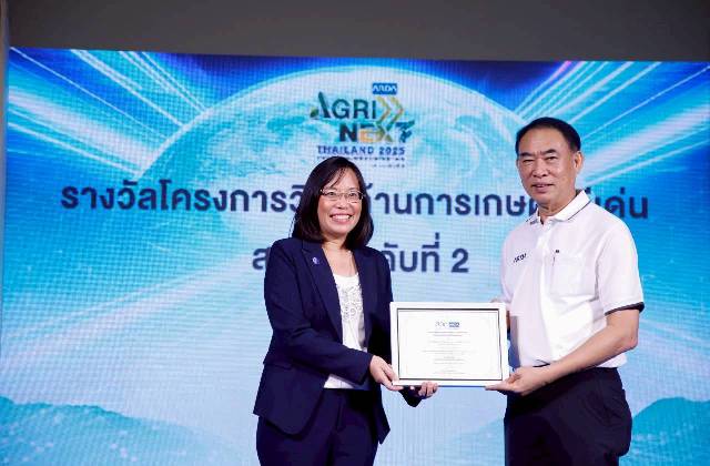 ดร.โศรดา วัลภา รองผู้ว่าการบริการอุตสาหกรรม สถาบันวิจัยวิทยาศาสตร์และเทคโนโลยีแห่งประเทศไทย (วว.) กระทรวงการอุดมศึกษา วิทยาศาสตร์ วิจัยและนวัตกรรม (อว.) ในฐานะหัวหน้าโครงการฯ เป็นผู้แทน วว. เข้ารับรางวัลโครงการวิจัยด้านการเกษตรดีเด่น จากผลงานโครงการบริหารจัดการเพื่อพัฒนา RAINS for Semi-Industrial Food Valley (Functional food and Personalized food) ซึ่งได้รับการสนับสนุนทุนวิจัยจาก สำนักงานพัฒนาการวิจัยการเกษตร (องค์การมหาชน) หรือ สวก. และจัดกิจกรรมนี้ขึ้น เนื่องในงานประชุมวิชาการและแสดงผลงานวิจัยและนวัตกรรมด้านการเกษตร ภายใต้หัวข้อ “นวัตกรรมเกษตรอัจฉริยะ : พลิกโฉมการเกษตรไทยสู่ความยั่งยืนและการแข่งขันในเวทีโลก” เพื่อเชิดชูเกียรติและเป็นกำลังใจแก่ผู้ผลิตผลงานวิจัยที่มีคุณภาพและสร้างผลกระทบเชิงประจักษ์ต่อภาคการเกษตร รวมทั้งเป็นเวทีแลกเปลี่ยนองค์ความรู้ เทคโนโลยีและนวัตกรรม ระหว่างนักวิจัย เกษตรกร ผู้ประกอบการ และหน่วยงานที่เกี่ยวข้อง ในการนี้ นายตรันต์ สิริกาญจน ผอ.กองสื่อสารภายใน สำนักสื่อสารองค์กร ในฐานะคณะทำงานโครงการฯ ผู้ประกอบการ บุคลากร วว. เข้าร่วมเป็นเกียรติและจัดแสดงนิทรรศการผลงานด้วย ในวันที่ 26 กันยายน 2568 ณ อิมแพค เมืองทองธานี