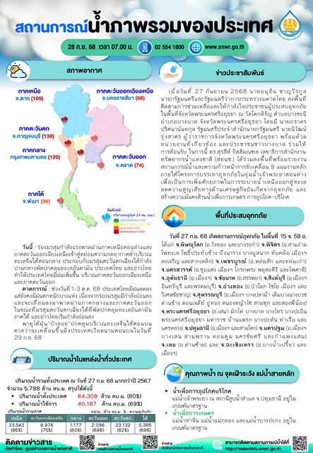 สถานการณ์น้ำภาพรวมของประเทศ วันที่ 28 ก.ย. 68 เวลา 7.00 น.