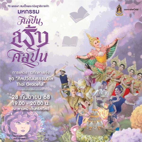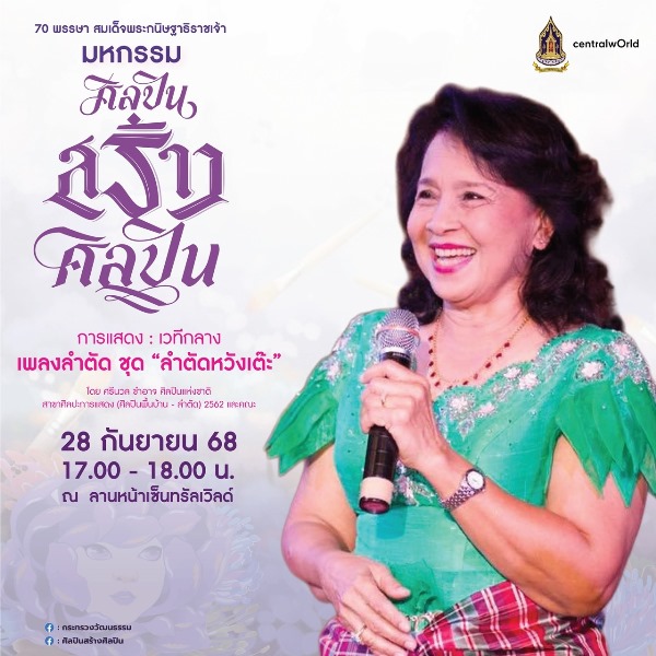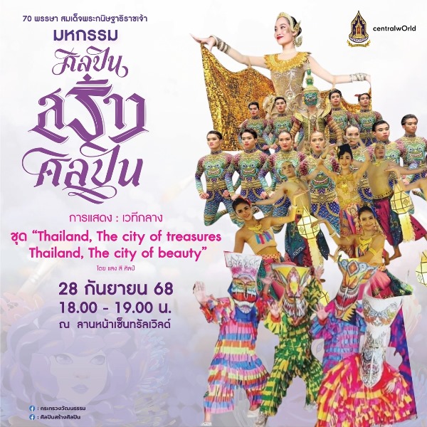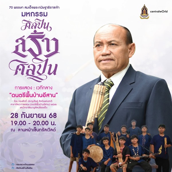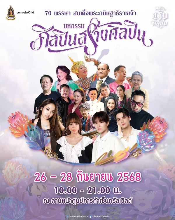 วันที่ 28 กันยายน 2568 นายประสพ เรียงเงิน ปลัดกระทรวงวัฒนธรรม กล่าวว่า จากการที่กระทรวงวัฒนธรรมจัดงาน 70 พรรษา สมเด็จพระกนิษฐาธิราชเจ้า มหกรรม “ศิลปินสร้างศิลปิน” 26 – 28 กันยายน 2568 ณ ลานหน้าศูนย์การค้าเซ็นทรัลเวิลด์ นั้น บรรยากาศการจัดงาน 2 วันที่ผ่านมา เป็นไปอย่างคึกคัก มีเด็กเยาวชน เครือข่ายวัฒนธรรม ผู้สนใจ สื่อมวลชน สนใจเข้าร่วมงานอย่างต่อเนื่อง ทุกๆกิจกรรมสามารถสนับสนุน และพัฒนาศักยภาพอุตสาหกรรมวัฒนธรรมไทยสู่สากล ผ่านกิจกรรมขยายผลภูมิปัญญาศิลปินสู่การพัฒนาอาชีพ เพื่อสืบสาน ถ่ายทอด และต่อยอดองค์ความรู้จากศิลปินแห่งชาติ ศิลปินศิลปาธร และศิลปินพื้นบ้านสู่เด็ก เยาวชน และประชาชนได้อย่างเป็นรูปธรรม ถือเป็นความสำเร็จภายใต้โครงการ “ศิลปินสร้างศิลปิน” เพื่อเฉลิมพระเกียรติสมเด็จพระกนิษฐาธิราชเจ้า กรมสมเด็จพระเทพรัตนราชสุดาฯ สยามบรมราชกุมารี เนื่องในโอกาสวันคล้ายวันพระราชสมภพ 2 เมษายน 2568 และทรงเจริญพระชนมายุ 70 พรรษา ในฐานะ “องค์วิศิษฏศิลปิน” ผู้ทรงเป็นเลิศทางศิลปะ ประเสริฐกว่าศิลปินทั้งปวง รวมถึงในวาระครบรอบ 40 ปี ศิลปินแห่งชาติด้วย