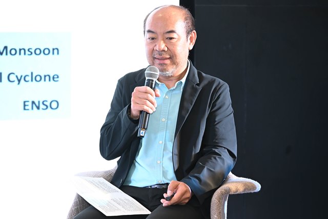 ประเด็น “สถานการณ์และแนวโน้มน้ำท่า” โดย ผู้ช่วยศาสตราจารย์ ดร.ไชยาพงษ์ เทพประสิทธิ์ มหาวิทยาลัยเกษตรศาสตร์ เพิ่มเติมในส่วนสถานการณ์น้ำท่า เนื่องจากพายุก่อนหน้าทำให้ปริมาณน้ำกักเก็บ และน้ำในลำน้ำมีปริมาณมากกว่าร้อยละ 80 จึงจำเป็นต้องเพิ่มการระบายน้ำ แต่ก็มีแนวโน้มลดลง เนื่องจากปริมาณน้ำไหลเข้ายังอยู่ในระบบที่ควบคุมได้ ซึ่งผลกระทบที่เกิดขึ้นจะอยู่ในบริเวณพื้นที่ต่ำ และพื้นที่นอกคันกั้นน้ำ ซึ่งช่วงนี้น้ำทะเลยังไม่หนุนสูง จึงอยู่ในระดับที่จัดการได้