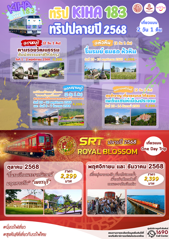 āđ€āļ•āļĢāļĩāļĒāļĄāđ€āļ›āļīāļ”āļ—āļĢāļīāļ›āļ—āđˆāļ­āļ‡āđ€āļ—āļĩāđˆāļĒāļ§āļ›āļĨāļēāļĒāļ›āļĩ 2568 āđ€āļ”āļ·āļ­āļ™āļ•āļļāļĨāļēāļ„āļĄ â€“ āļ˜āļąāļ™āļ§āļēāļ„āļĄ āļāļąāļš 2 āļ‚āļšāļ§āļ™āļŠāļļāļ”āļžāļīāđ€āļĻāļĐ KIHA 183 āđāļĨāļ° SRT ROYAL BLOSSOM āļ—āļąāđ‰āļ‡āđāļšāļš 2 āļ§āļąāļ™ 1 āļ„āļ·āļ™ āđāļĨāļ° One Day Trip