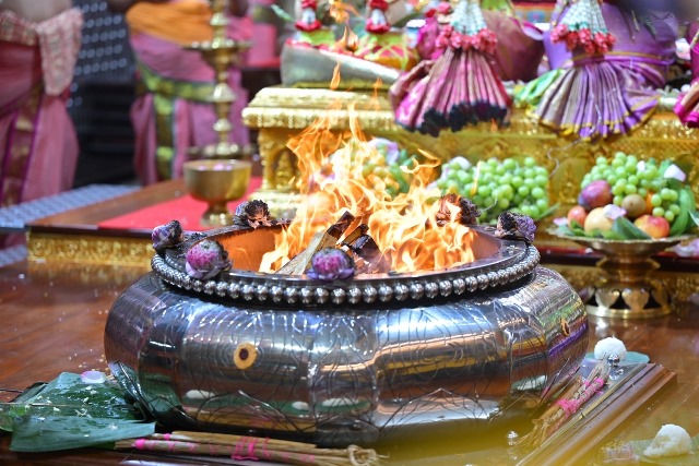 ศาสนิกชนที่เข้าร่วมในพิธีอภิเษกสมรสขององค์พระแม่ศรีมหาอุมาเทวีและองค์พระศิวะมหาเทพ จะได้ร่วมในขบวนแห่ขันหมาก ซึ่งประกอบด้วยขนมมงคลบนถาดบูชาสำหรับถวายองค์เทพ โดยเมื่อจบพิธี จากนั้นจึงเข้าร่วมในพิธีโหมกูณฑ์ ซึ่งเป็นหนึ่งในพิธีบูชาพระเป็นเจ้าทางศาสนาฮินดู โดยพราหมณ์จะนำสิ่งของเครื่องบูชาต่างๆ อาทิ ไม้ เครื่องหอม สมุนไพร ธัญพืช ดอกไม้ เนย น้ำผึ้ง น้ำมันเนย ข้าว ขนม ผลไม้ อัญมณี พวงมาลัย ตลอดจนพัสตราภรณ์ เป็นต้น ลงไปเผาในกองกูณฑ์ที่ลุกโชนด้วยไฟ ซึ่งถือเป็นการถวายเครื่องบูชาผ่านทางพระอัคนี ไปสู่พระเป็นเจ้าองค์ที่เราประกอบพิธีบูชา