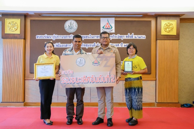 รางวัลชนะเลิศ: วิสาหกิจชุมชนกลุ่มยางก้อนถ้วย กยท.ตำบลนางหลง จังหวัดนครศรีธรรมราช โดดเด่นด้านการผลิตและรวบรวมยางพารา ได้รับรองมาตรฐาน EUDR (European Union Deforestation Regulation) และพัฒนาระบบการจำหน่ายผ่านการประมูล สร้างรายได้เพิ่มขึ้นให้กับเกษตรกรสมาชิกและกระจายผลประโยชน์สู่ชุมชนอย่างเป็นธรรม