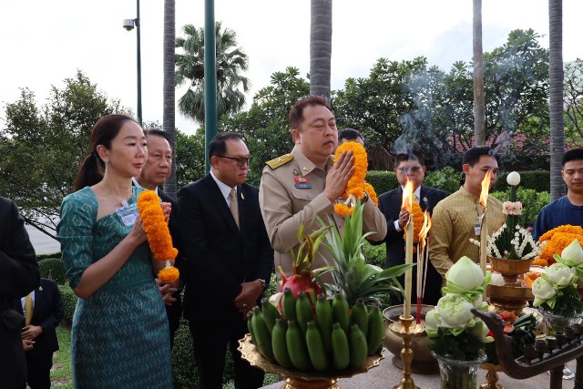 รองนายกฯ สุชาติ สักการะสิ่งศักดิ์สิทธิ์ประจำทำเนียบรัฐบาล เพื่อความเป็นสิริมงคล ก่อนเข้าเริ่มปฏิบัติงานในตำแหน่งรองนายกรัฐมนตรี