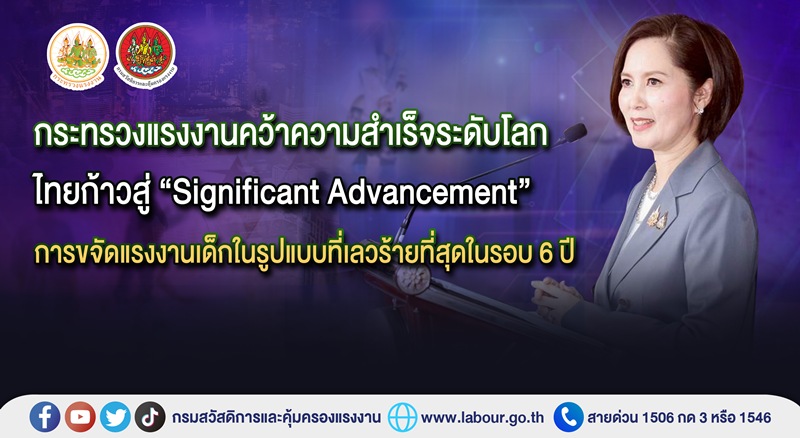 “ความสำเร็จครั้งนี้เป็นเพียงก้าวแรกของไทยในการบริหารจัดการแรงงานที่ปลอดภัย เป็นธรรม และยั่งยืน ทัดเทียมตามมาตรฐานสากล เพื่อคุ้มครองเด็ก เยาวชน และแรงงานทุกกลุ่มอย่างเท่าเทียมและมีคุณภาพชีวิตที่ดี ทำให้เด็กและเยาวชนไทยมีการเติบโตอย่างมีคุณภาพ สามารถเป็นกำลังสำคัญในการพัฒนาประเทศชาติให้เจริญก้าวหน้าอย่างมั่นคง และยั่งยืนต่อไป” รมว.แรงงาน กล่าวทิ้งท้าย