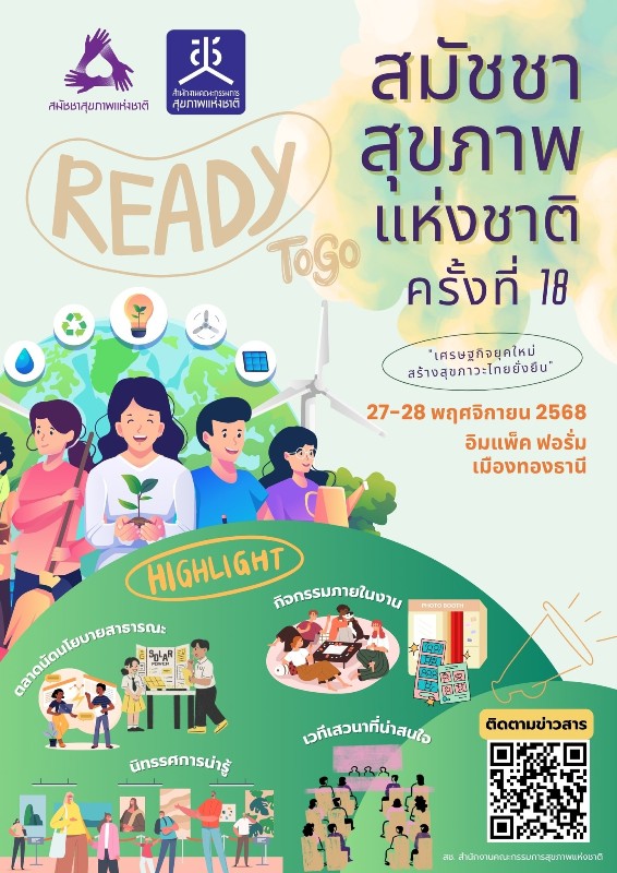 สำหรับ “สมัชชาสุขภาพแห่งชาติ” ครั้งที่ 18 ปี 2568 ภายใต้ตรีม”เศรษฐกิจยุคใหม่ สร้างสุขภาวะไทยยั่งยืน” ซึ่งจะมีการจัดงานในวันที่ 27- 28 พฤศจิกายน 2568 ณ อิมแพ็ค ฟอรั่ม เมืองทองธานี