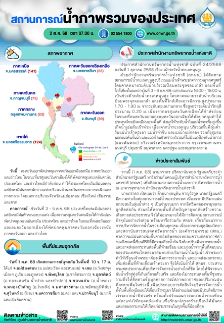 สถานการณ์น้ำภาพรวมของประเทศ วันที่ 2 ต.ค. 68 เวลา 7.00 น.