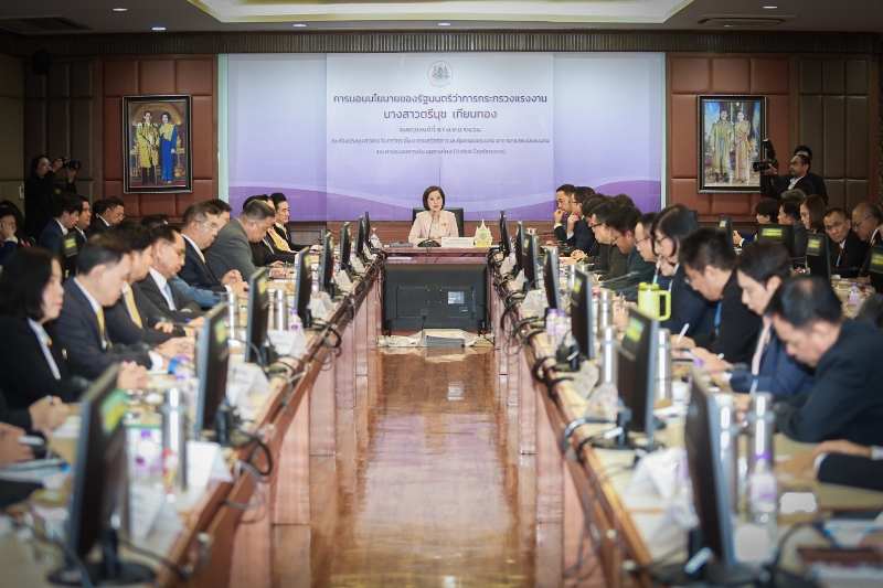 เมื่อวันที่ 2 ตุลาคม 2568 นางสาวตรีนุช เทียนทอง รัฐมนตรีว่าการกระทรวงแรงงาน มอบนโยบายขับเคลื่อนภารกิจงานกระทรวงแรงงานให้แก่คณะผู้บริหารและบุคลากรกระทรวงแรงงาน เพื่อกำหนดเป้าหมายในการเร่งแก้ไขปัญหาแรงงานที่เร่งด่วนและสำคัญ เช่น ปัญหาขาดแคลนแรงงาน, การเร่งพัฒนาทักษะ Upskill และ Reskill ให้แรงงานไทย และการส่งเสริมสวัสดิการแรงงาน โดยมุ่งเป้าเดินหน้านโยบายแรงงานให้สอดรับกับความท้าทายทั้งในประเทศและต่างประเทศ พร้อมย้ำหลักการทำงานโปร่งใส ตรวจสอบได้ เพื่อยกระดับคุณภาพชีวิตแรงงานทุกกลุ่ม ณ อาคารกระทรวงแรงงาน กรุงเทพฯ