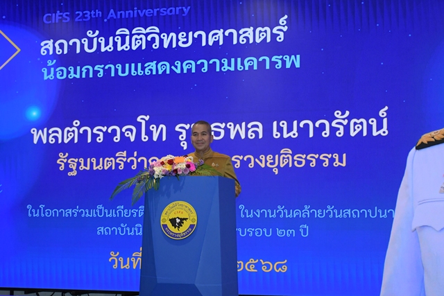 พลตำรวจโท รุทธพล เนาวรัตน์ รัฐมนตรีว่าการกระทรวงยุติธรรม กล่าวว่า “สถาบันนิติวิทยาศาสตร์ถือเป็นหน่วยงานด้านอำนวยความยุติธรรมหลักที่มีบทบาทสำคัญยิ่ง ในการขับเคลื่อนกระบวนการยุติธรรมของประเทศ ด้วยภารกิจในการพิสูจน์ข้อเท็จจริงทางวิทยาศาสตร์ เพื่อความเป็นธรรม ความถูกต้อง และความโปร่งใสในทุกมิติ ตามนโยบายของรัฐบาล ตลอดเวลาที่ผ่านมา บุคลากรของสถาบันนิติวิทยาศาสตร์ได้แสดงให้เห็นถึงความมุ่งมั่น ทุ่มเท และเสียสละ ทำให้สถาบันนิติวิทยาศาสตร์เป็นที่ยอมรับและภาคภูมิใจทั้งในระดับชาติและนานาชาติ”